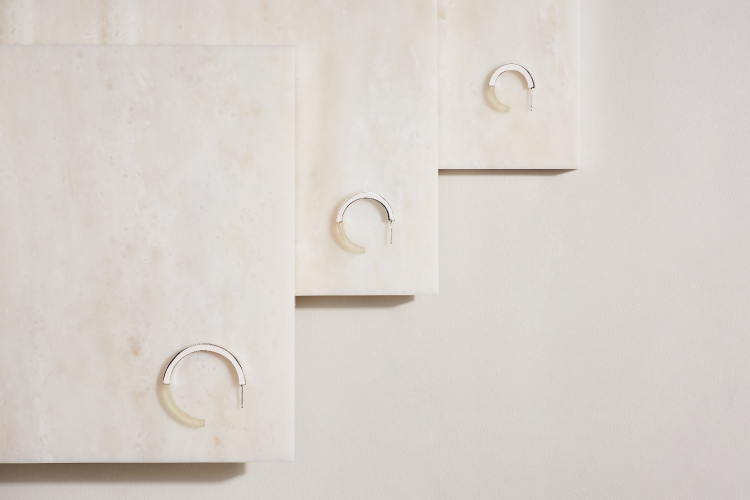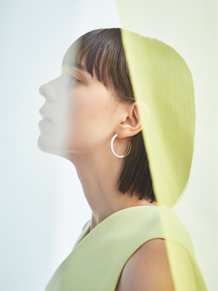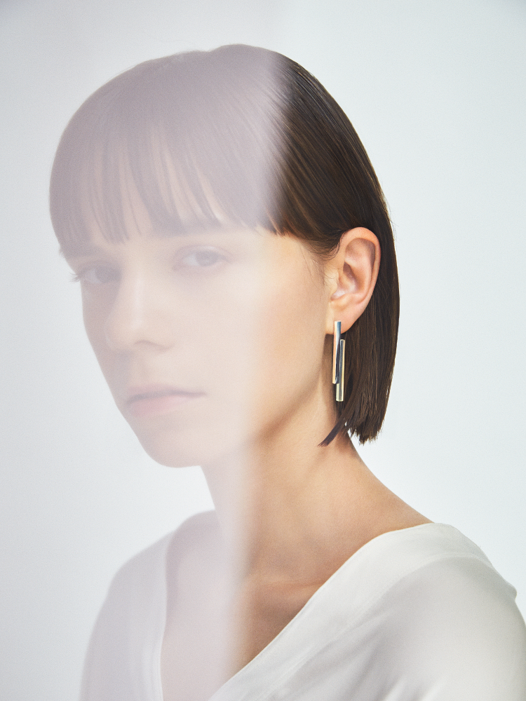 クリアなラバーを鏡面に仕上げたシルバーと融合したジュエリー。
